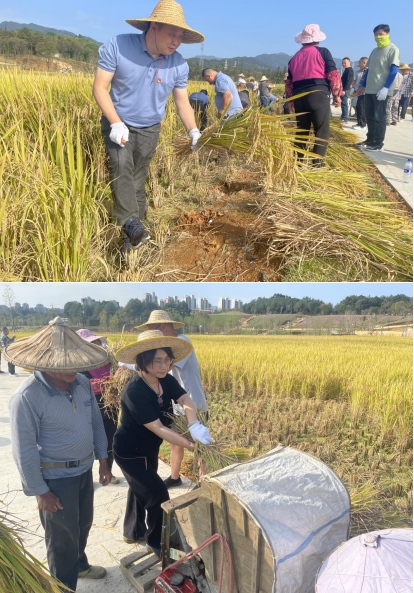 秋意漸寒,稻谷飄香。為深入貫徹習(xí)近平總書記關(guān)于實施鄉(xiāng)村振興戰(zhàn)略和糧食安全的重要論述,以學(xué)促干,推動學(xué)習(xí)貫徹習(xí)近平新時代中國特色社會主義思想主題教育見行見效2023年117上午,市政集團(tuán)黨支部組織全體黨員干部龍州濕地項目開展“傳承蘇區(qū)好作風(fēng) 四下基層促發(fā)展”主題黨日活動,全面助力稻谷收割工作。