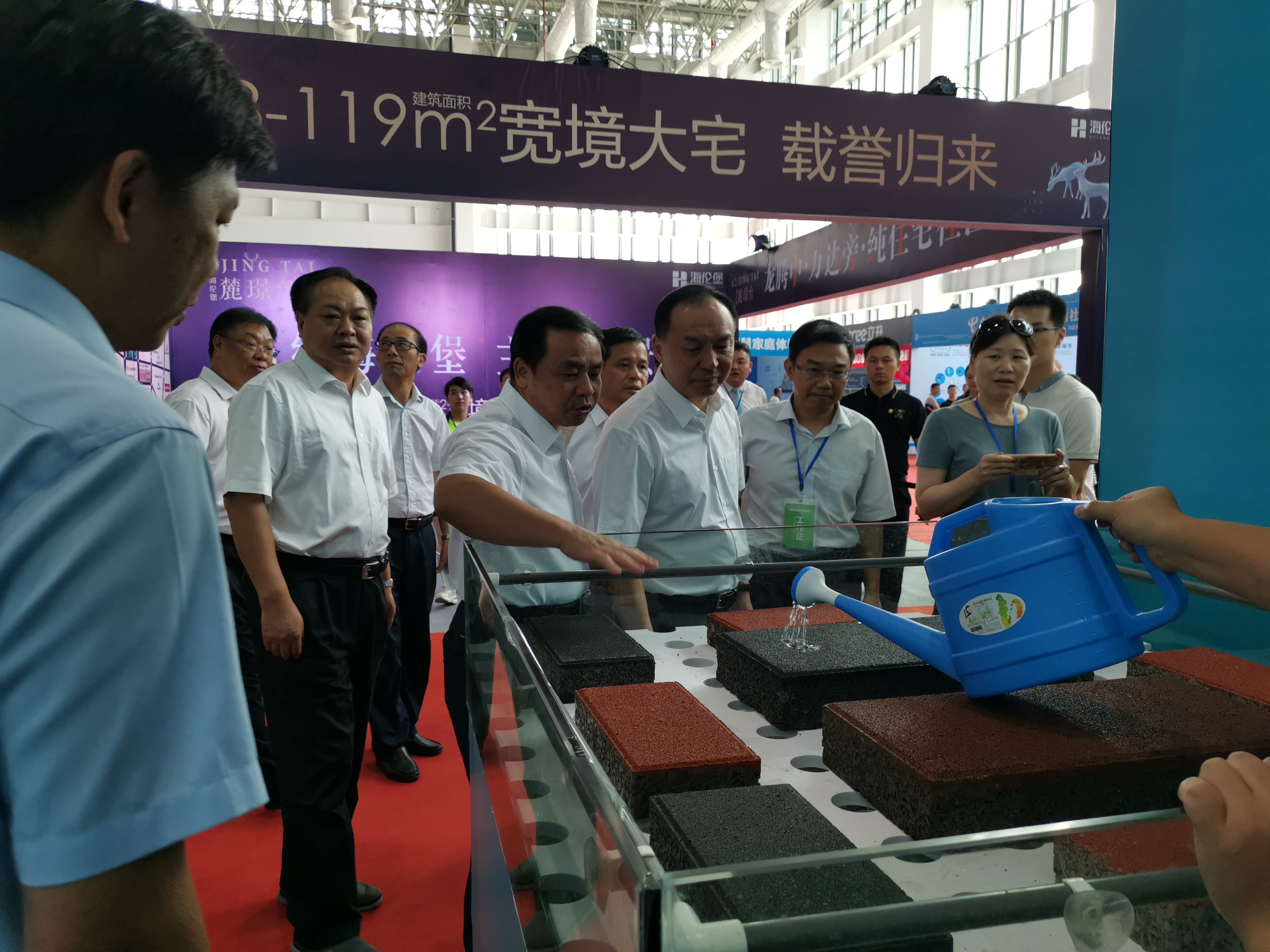 8月16日—18日,龍巖天潤(rùn)龍城新型建材有限公司參加龍巖市建筑產(chǎn)業(yè)發(fā)展大會(huì)建筑新型材料展,展會(huì)上公司發(fā)放了公司產(chǎn)品宣傳冊(cè),播放公司產(chǎn)品宣傳片,擺放公司產(chǎn)品樣品并在現(xiàn)場(chǎng)進(jìn)行透水效果演示,市委許維澤書(shū)記一行在巡視展館中饒有興致地觀看聽(tīng)取了公司產(chǎn)品性能情況介紹,對(duì)透水建材產(chǎn)品贊譽(yù)有加。